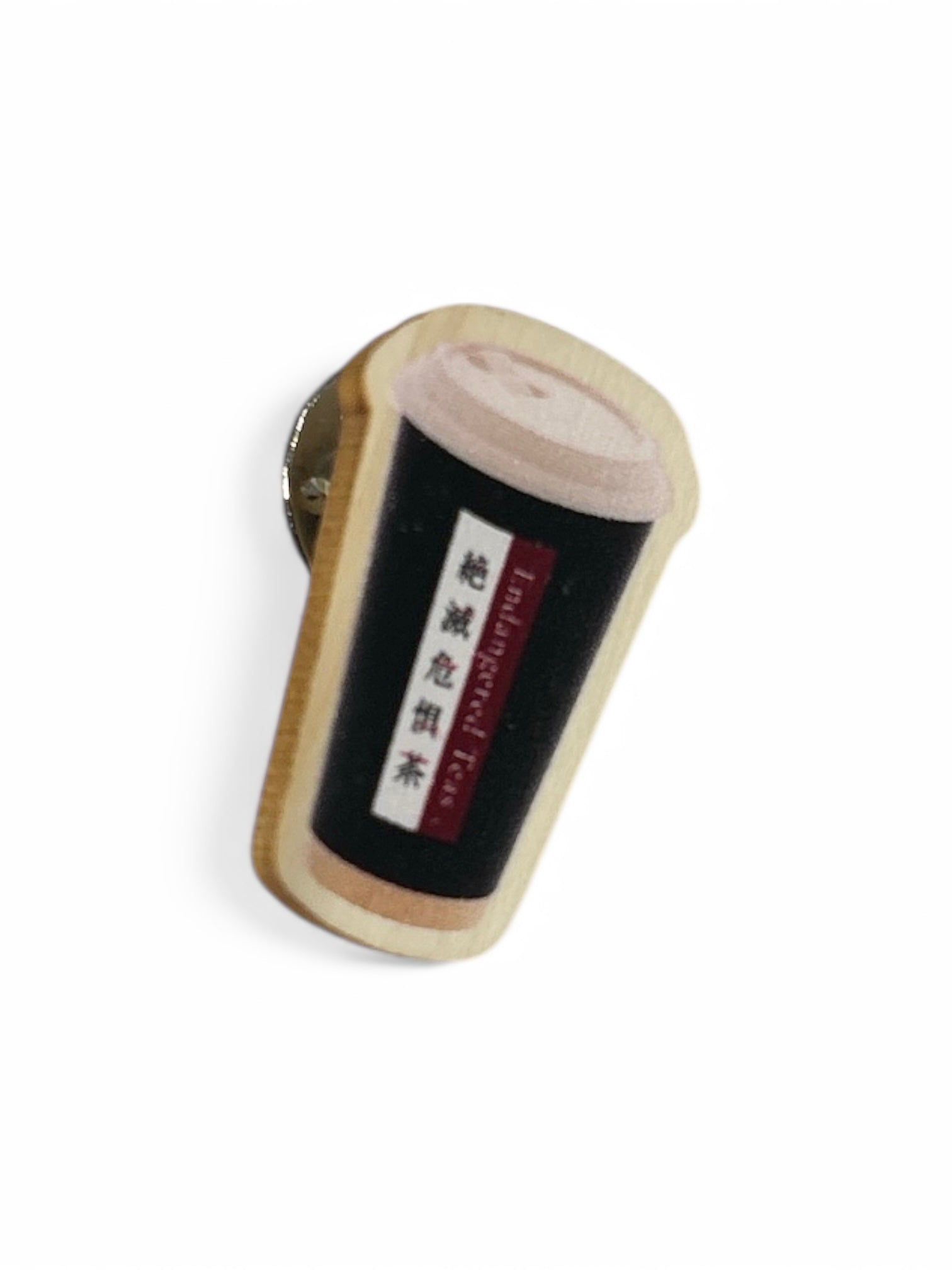 このピンバッジは、その“絶滅危惧茶”を象徴する コップをモチーフ にしたデザイン。